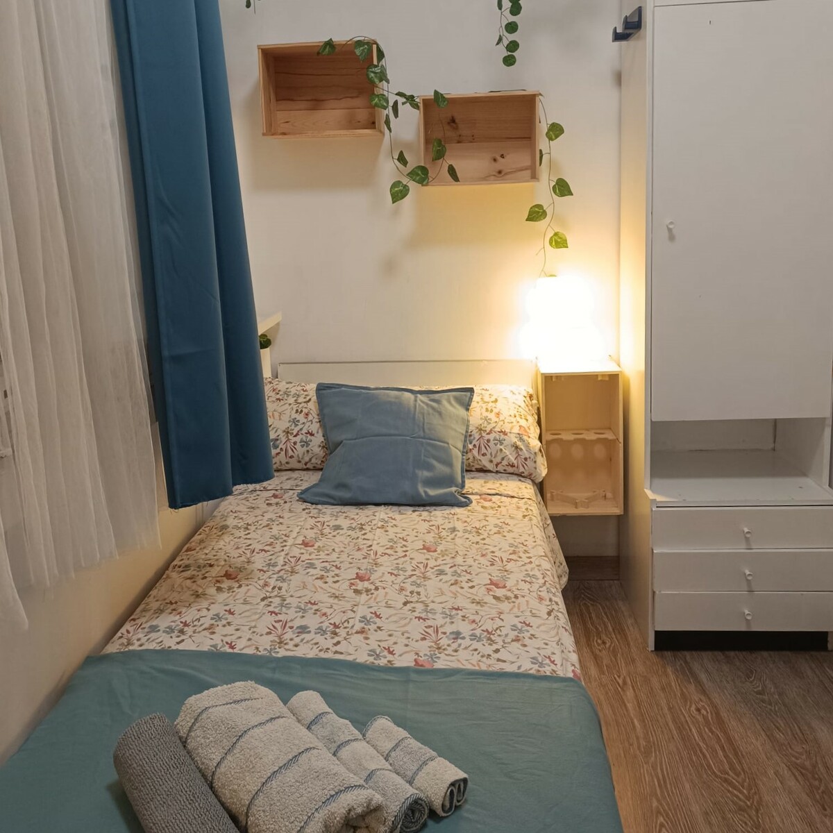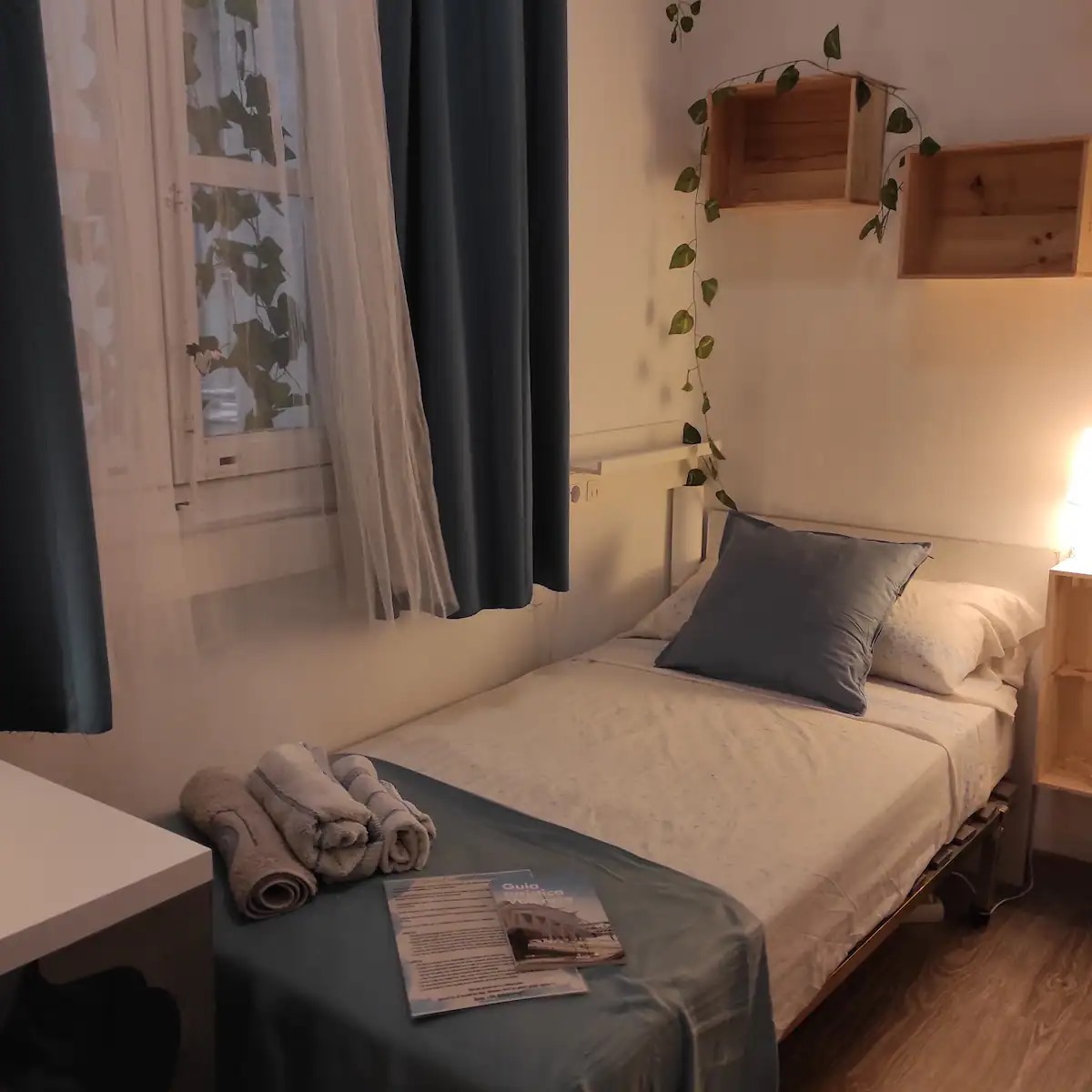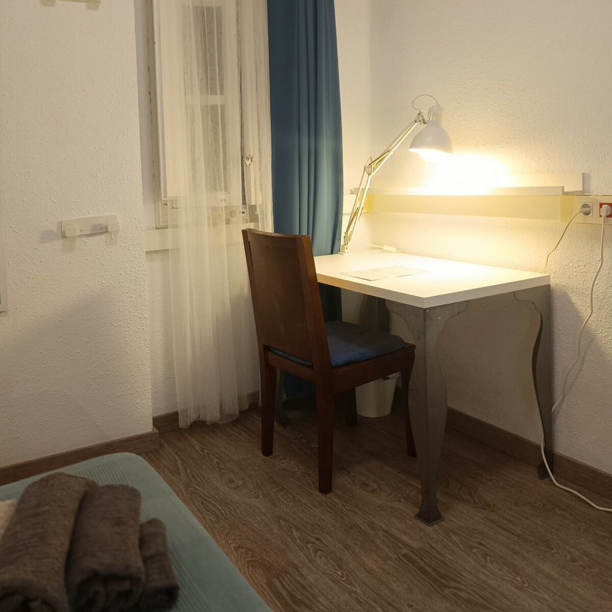 Access shared areas for collaboration and socializing (ask about coworking options). Located in the vibrant El Ensanche neighborhood, this charming room is in a peaceful historic building. Note: no elevator.
